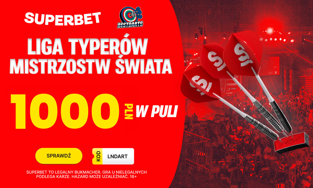 Spotkania w ramach mistrzostw świata PDC 2026 – w tym mecze trzech reprezentantów Polski – można oglądać na stronie internetowej oraz w aplikacji mobilnej Superbet, głównego sponsora Łączy Nas Dart. Oto szczegó