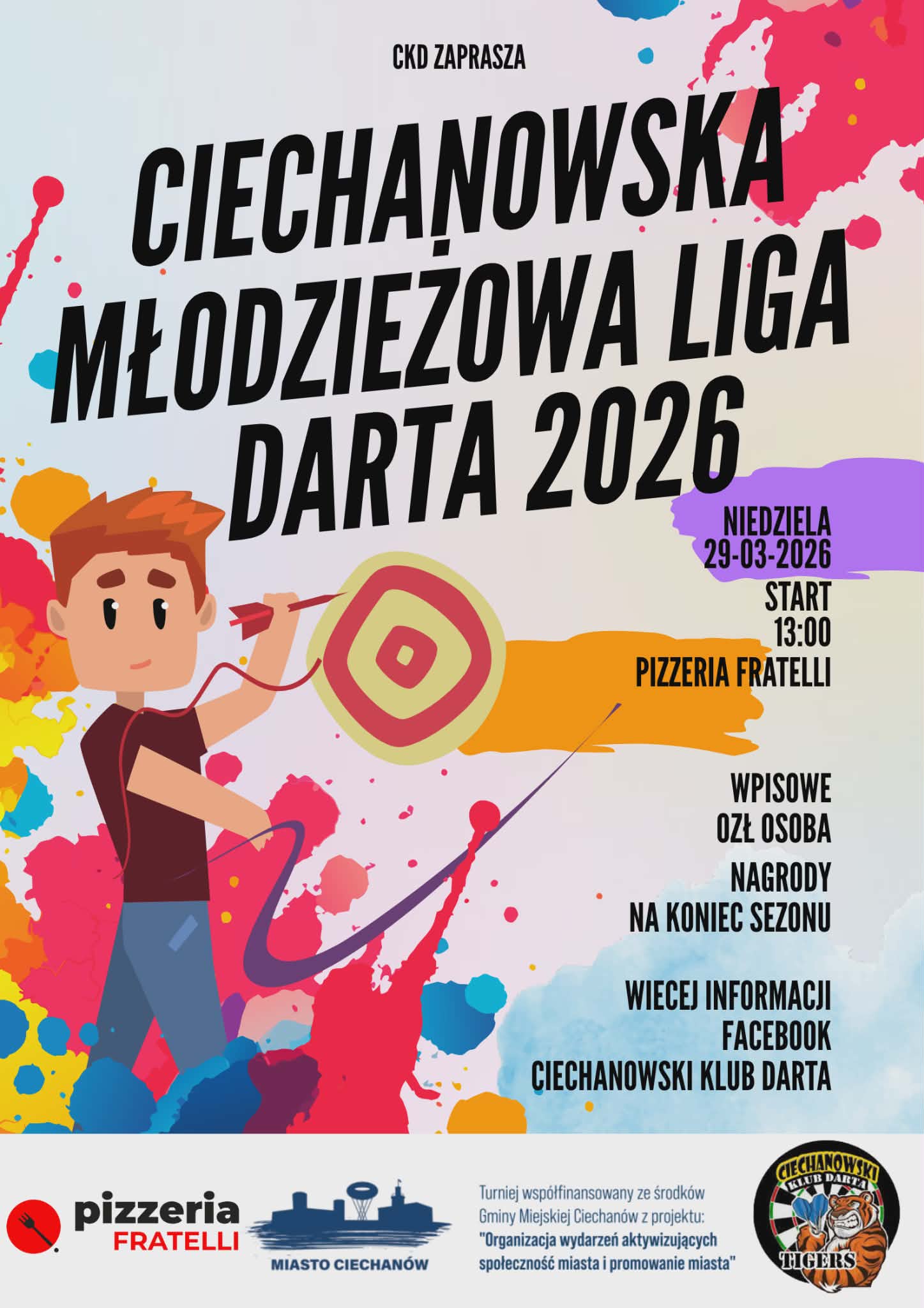 Zapisz przez FB Ciechanowskiej Ligi Darta.