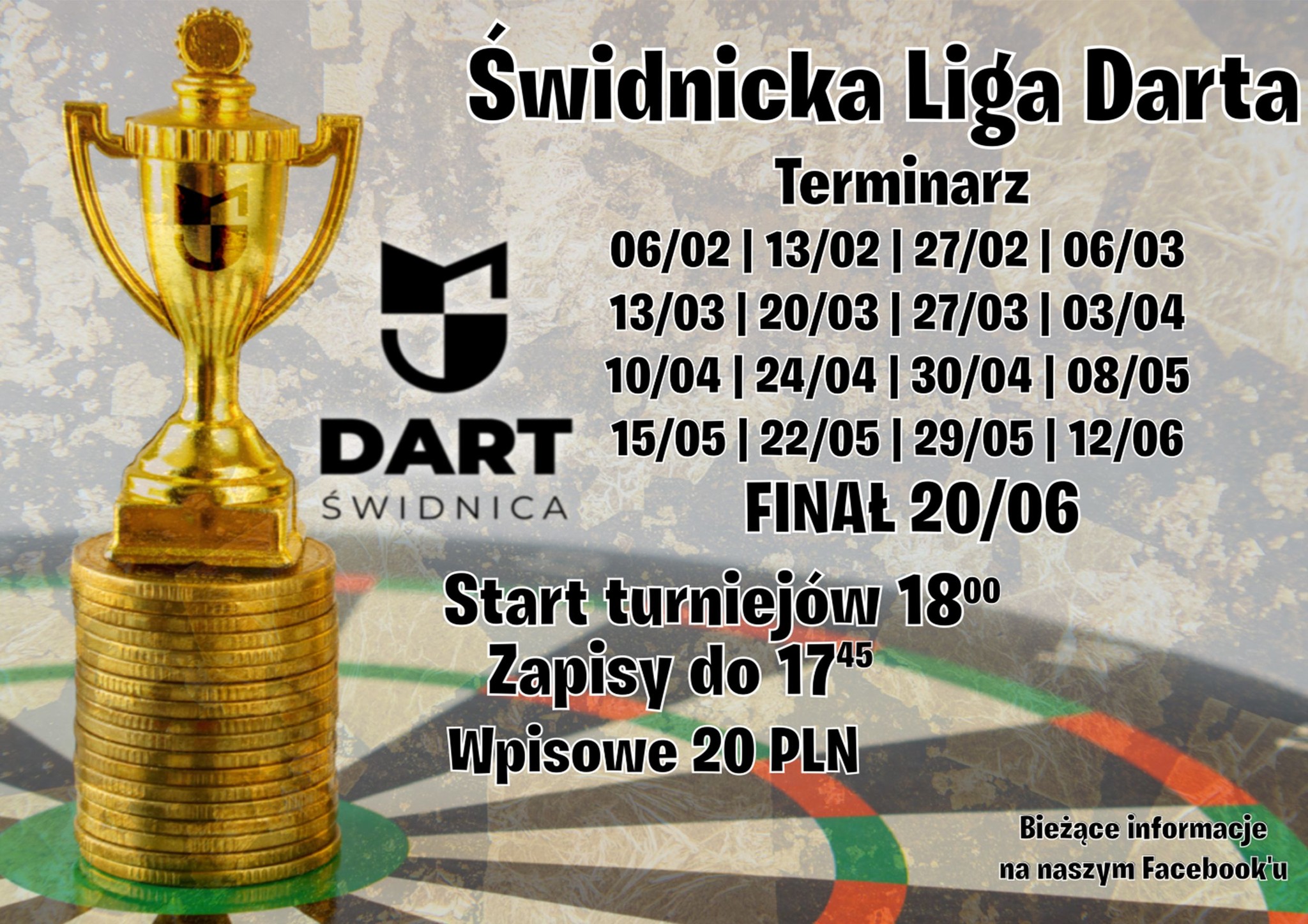 Zapisy przed startem turnieju (do 17:45). Więcej informacji można znaleźć na FB Dart Świdnica.