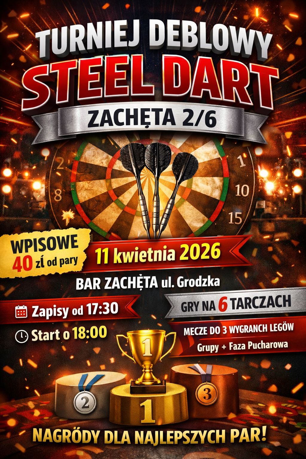 11kwietnia18:0023:30Turniej deblowy steel dartOdmianaSteelWojewództwoMazowieckieMiastoPłock