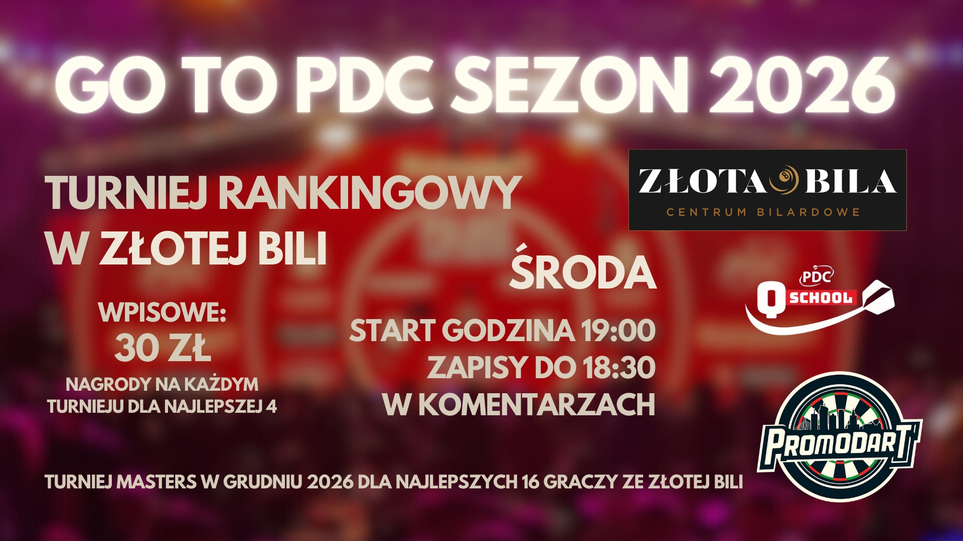 Wpisowe 20 zł.Zapisy na miejscu do 18:30, albo mailowo na dartzabki@gmail.com