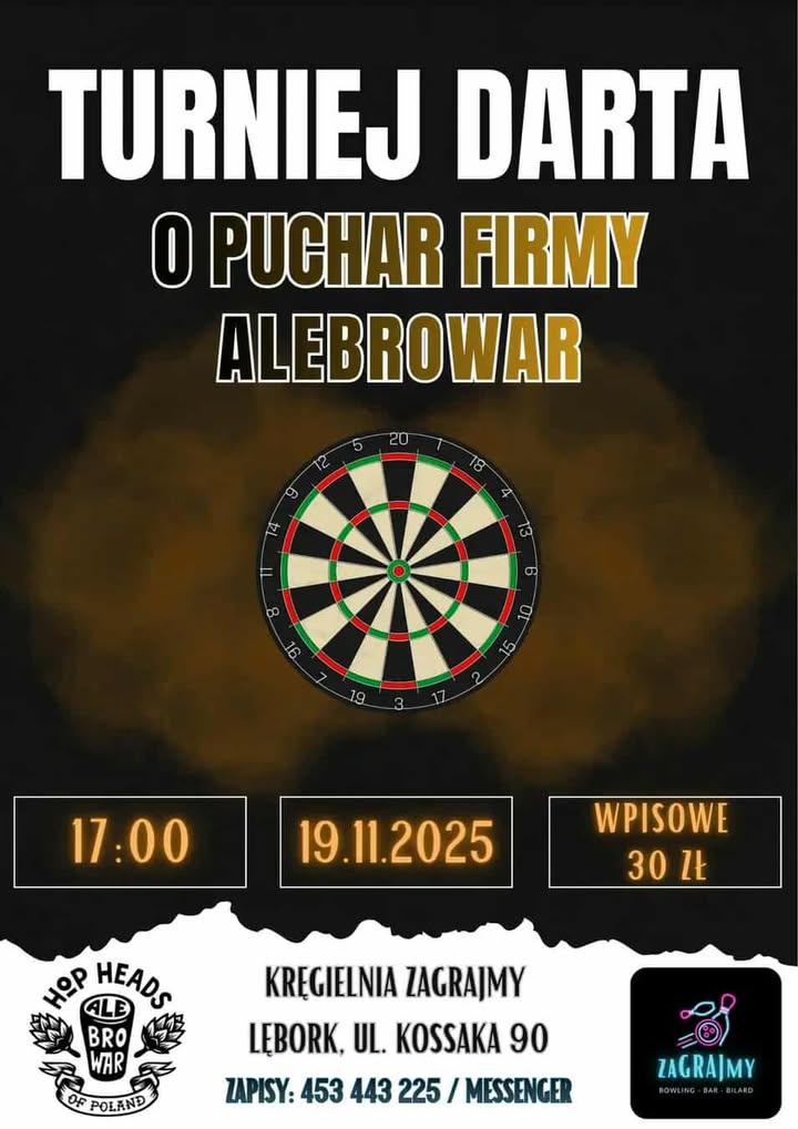 Wpisowe 30 zł. Zapisy telefonicznie 453443225 (Rafał) lub przez messenger Kręgielnia Zagrajmy. Liczba miejsc ograniczona.