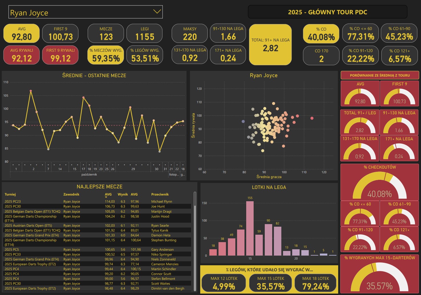 Problemów z podwójnymi Joyce nie miał w pierwszym meczu turnieju, gdy pokonał 3:0 Owena Batesa (wykorzystał 9 z 14 lotek – 64,3% skuteczności). W zasadzie, w tamtym spotkaniu nie miał problemów z niczym. W ostatnim secie jego poziom nieco spadł, więc stanęło na średniej 95,3. To bardzo dobry występ, który przed starciem z Ratajskim wprowadza niepokój.