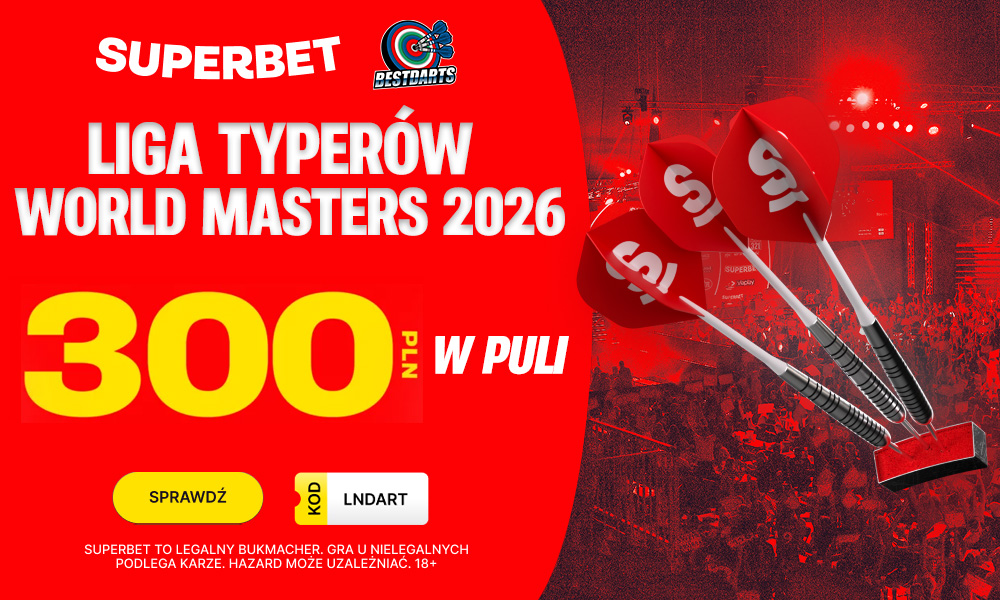 Freebety gwarantuje nasz sponsor generalny SUPERBET. Przy okazji przypominamy, że każda rejestracja przez dedykowany link TUTAJ z kodem LNDART i pierwsza wpłata min. 50 PLN wspiera funkcjonowanie naszego serwisu. Założenie konta to zaledwie 30 sekund, a możecie zyskać podwojenie pierwszej wpłaty do 200 zł, freebet 35 zł oraz dodatkowe 20 zł za postawienie zakładu w aplikacji. W Superbet obejrzycie również wszystkie spotkania World Masters. Szczegóły tutaj: https://bit.ly/WorldMastersWsuperbet
